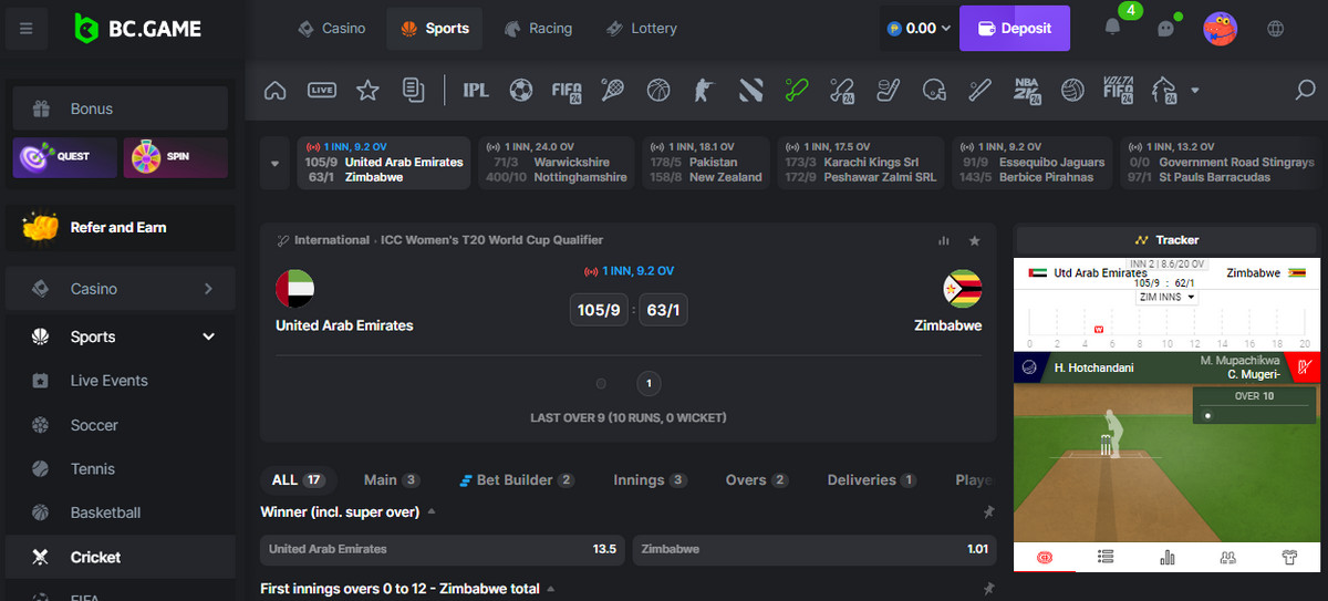 - Markets. BC.Game caters to diverse betting tastes with a wide variety of markets. Users can bet on winners, total runs, player outcomes like top scorer or top bowler, boundaries, and even the outcome of individual ball throws.