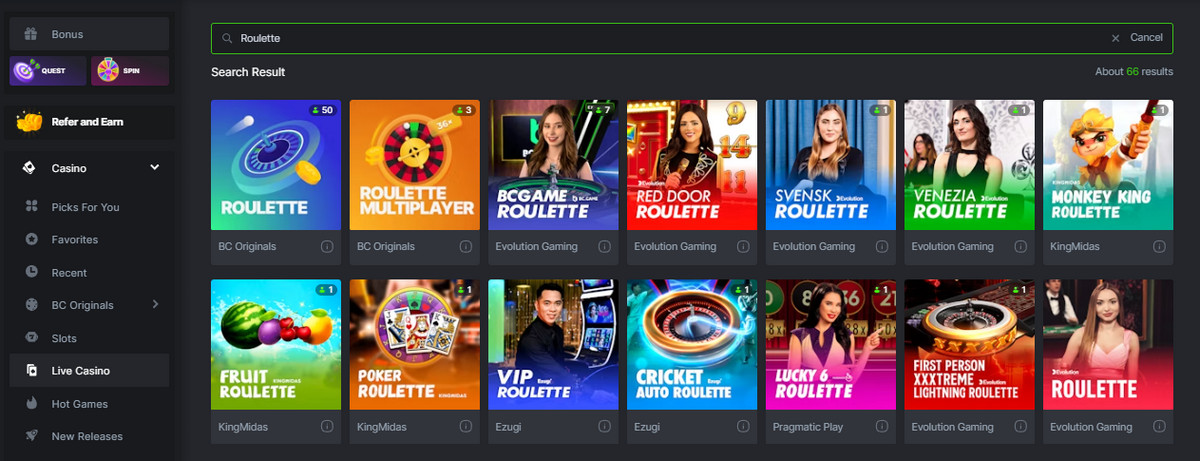 In terms of gaming diversity and quality, BC.Game collaborates with the best game providers in the business. These same game providers make sure that BC.Game is presented with a variety of live roulette games and other casino experiences that cover everyone’s levels and appeal to the huge span of preferences held within the gambling community.